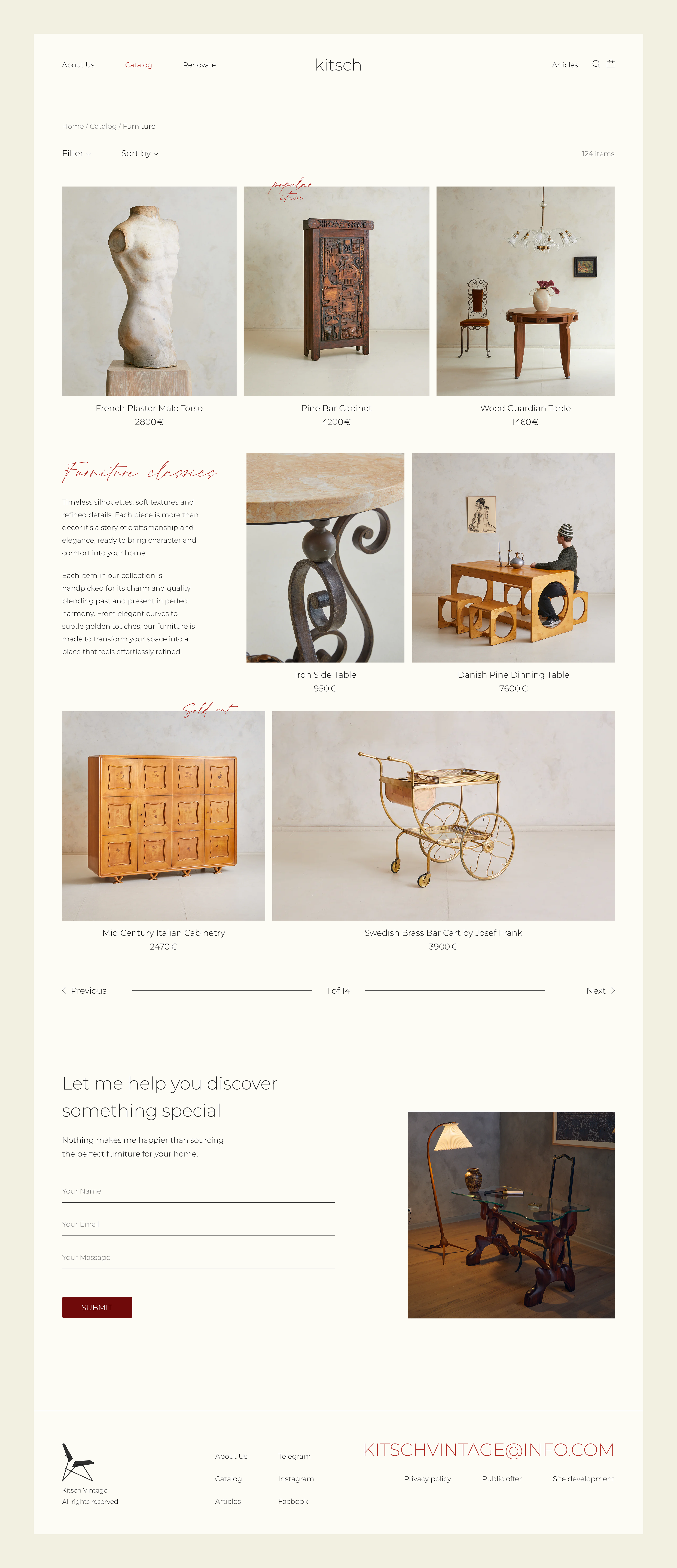Curating timeless aesthetics, Kitsch is a unique online platform providing access to exquisite authentic vintage furniture and decor. The website offers carefully curated vintage pieces alongside inspiring articles about furniture restoration. Each item features detailed descriptions and photography paired with guidance on how to renovate and preserve its original charm. Beyond visual inspiration the platform helps users locate vintage stores in their area and customize pieces before purchase. To make the work practical and accessible the guides specify the required tools and estimated work time for every project. Art Direction | 2024 | Design Factory International