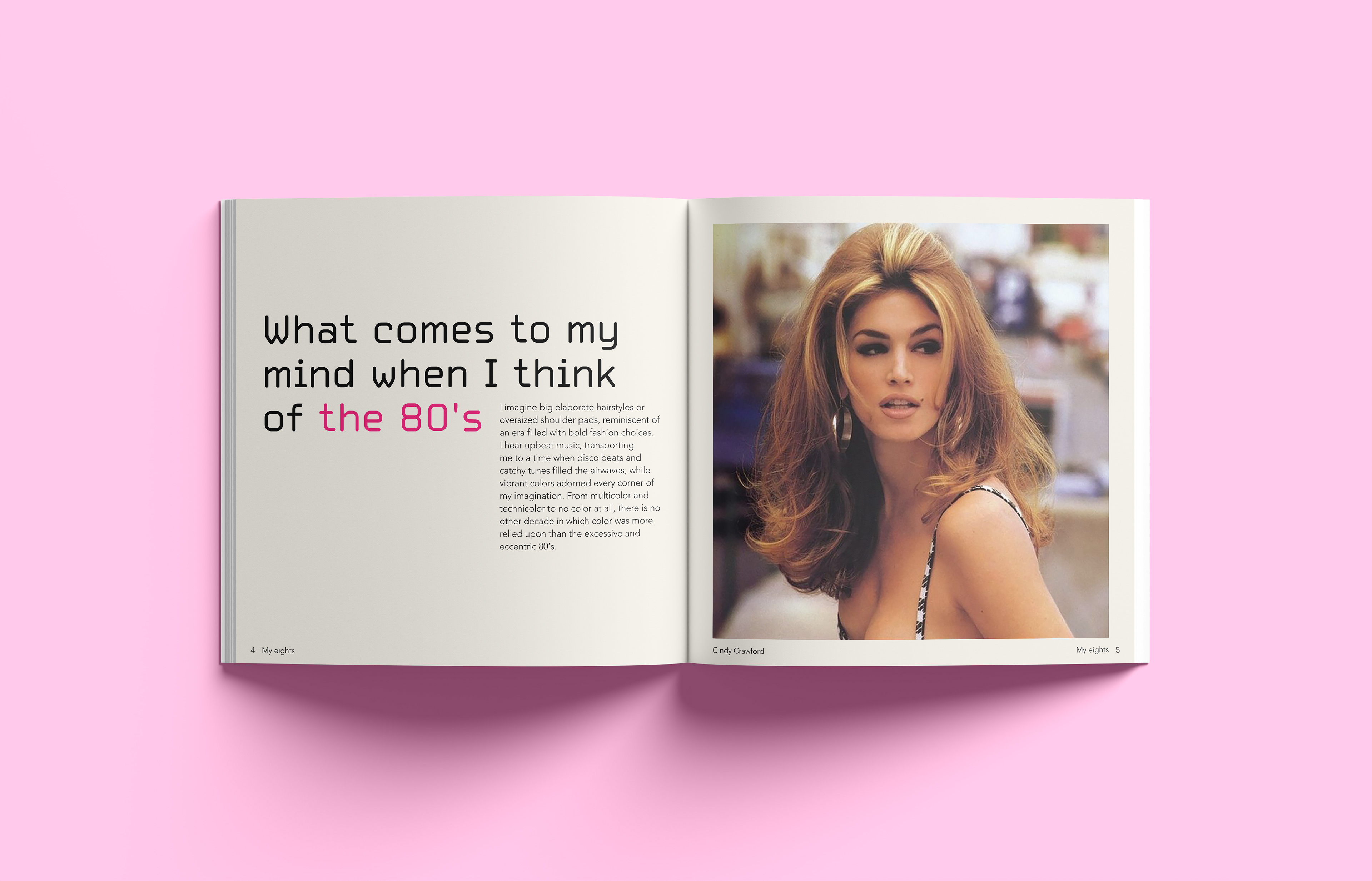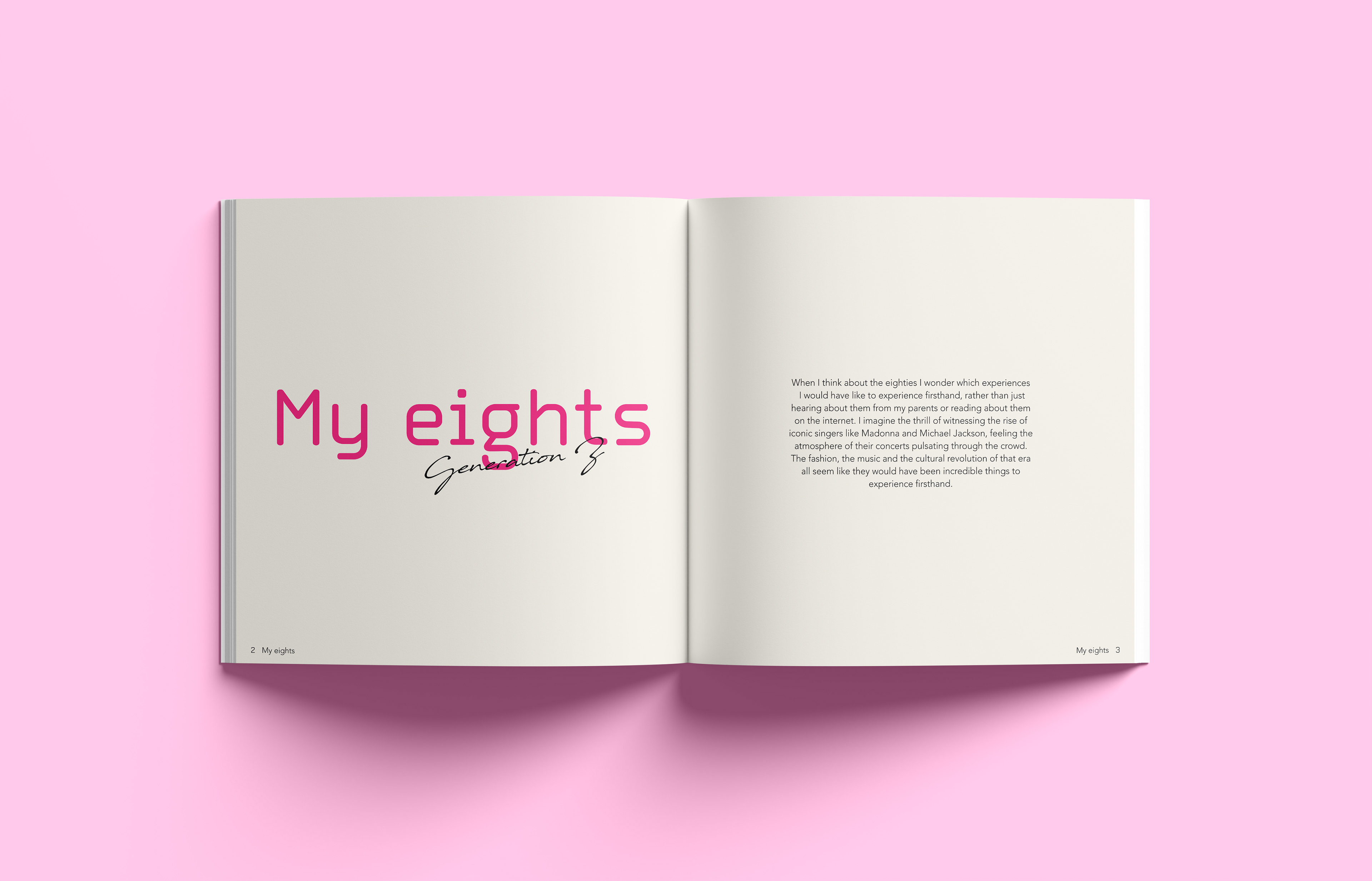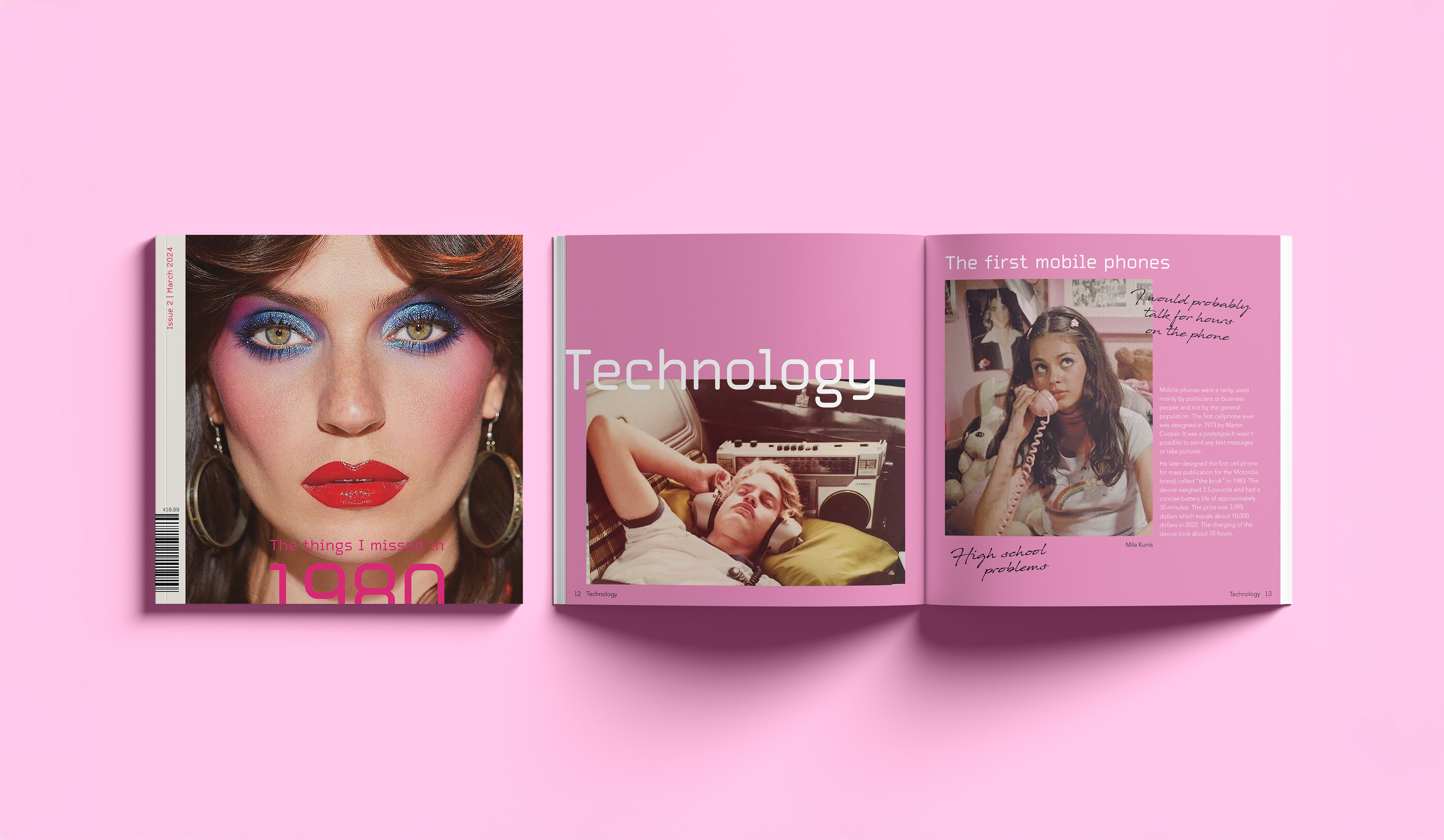 A nostalgic dive into an unknown era I explore the eighties through the lens of someone born in 2000. I cover subjects like fashion music and design reflecting on the unique cultural energy and analog aesthetics I feel I missed. The design brings together archival photography and contemporary commentary to bridge the time gap. I share my thoughts and impressions through handwritten notes placed alongside the images offering a subjective look at a time I never lived through yet feel deeply connected to. Editorial Design | 2023 | Design Factory International