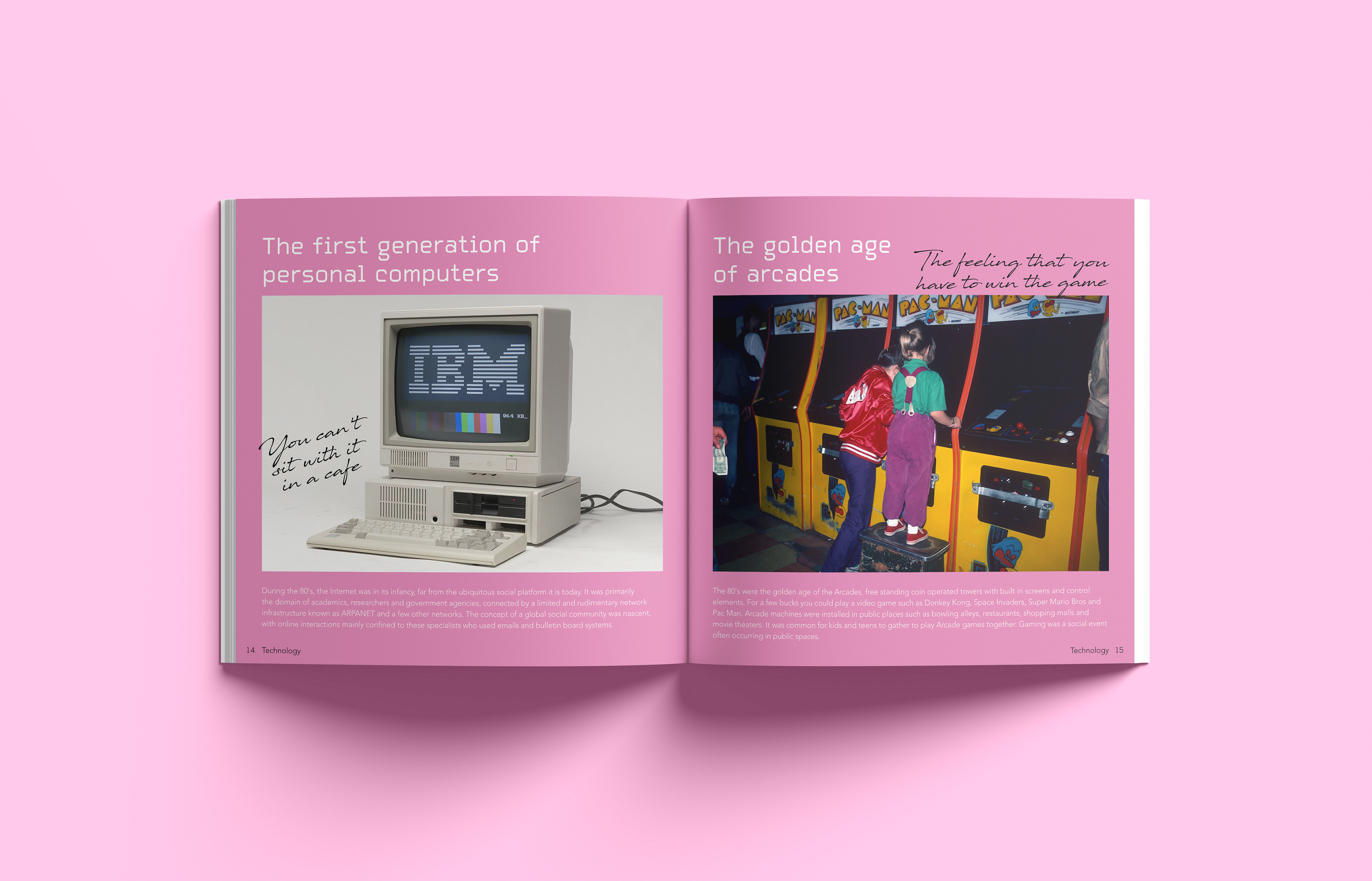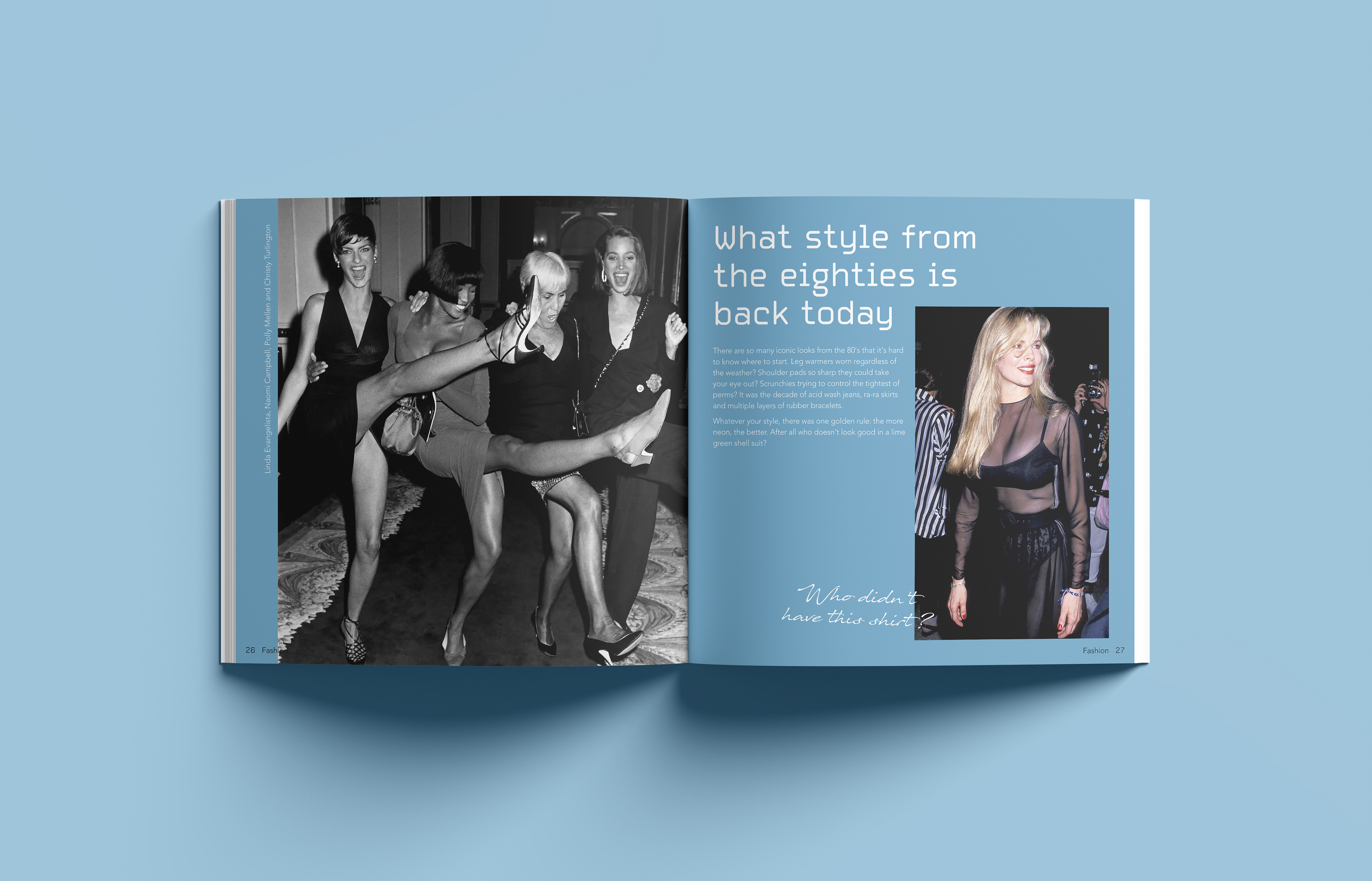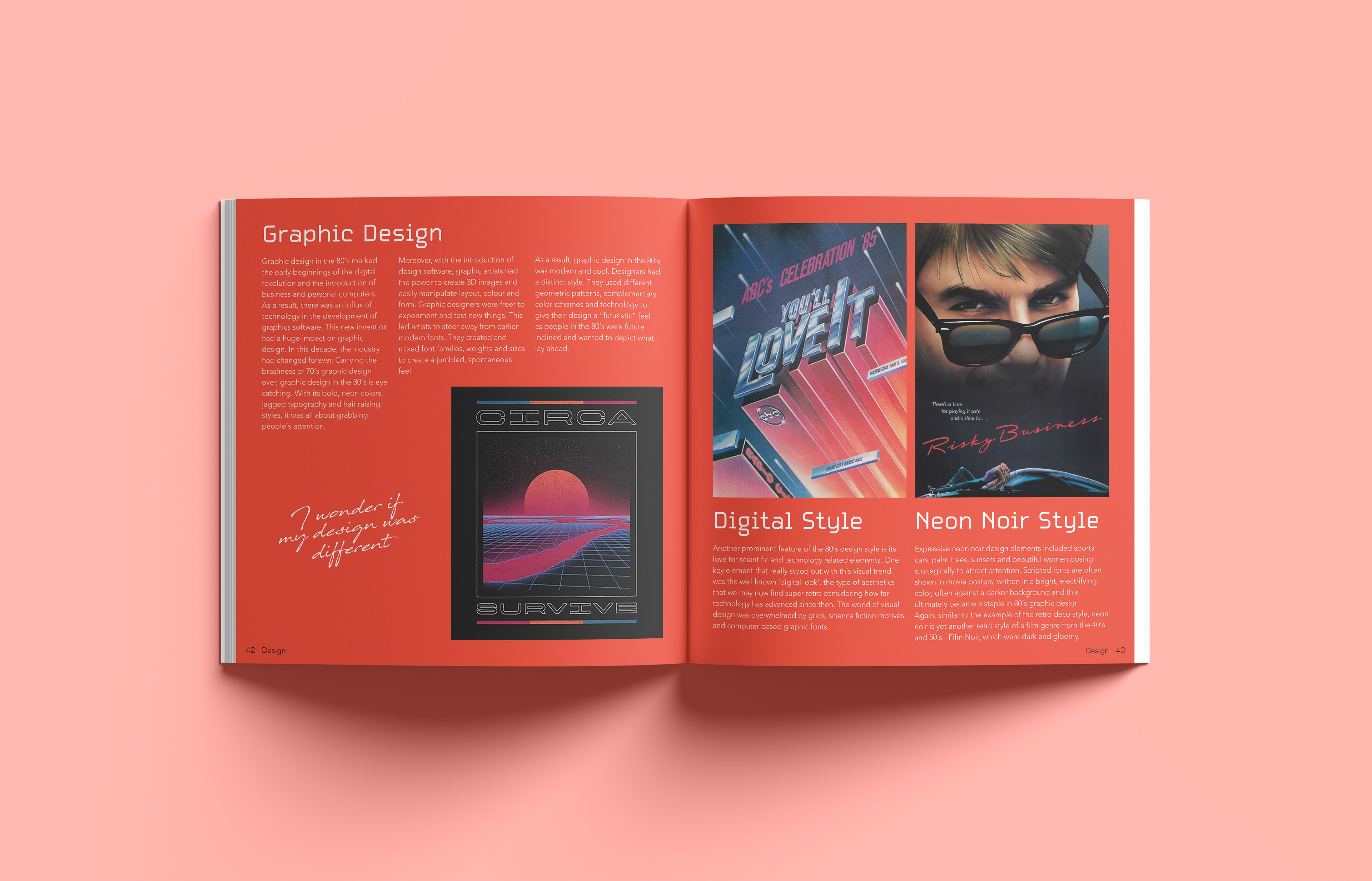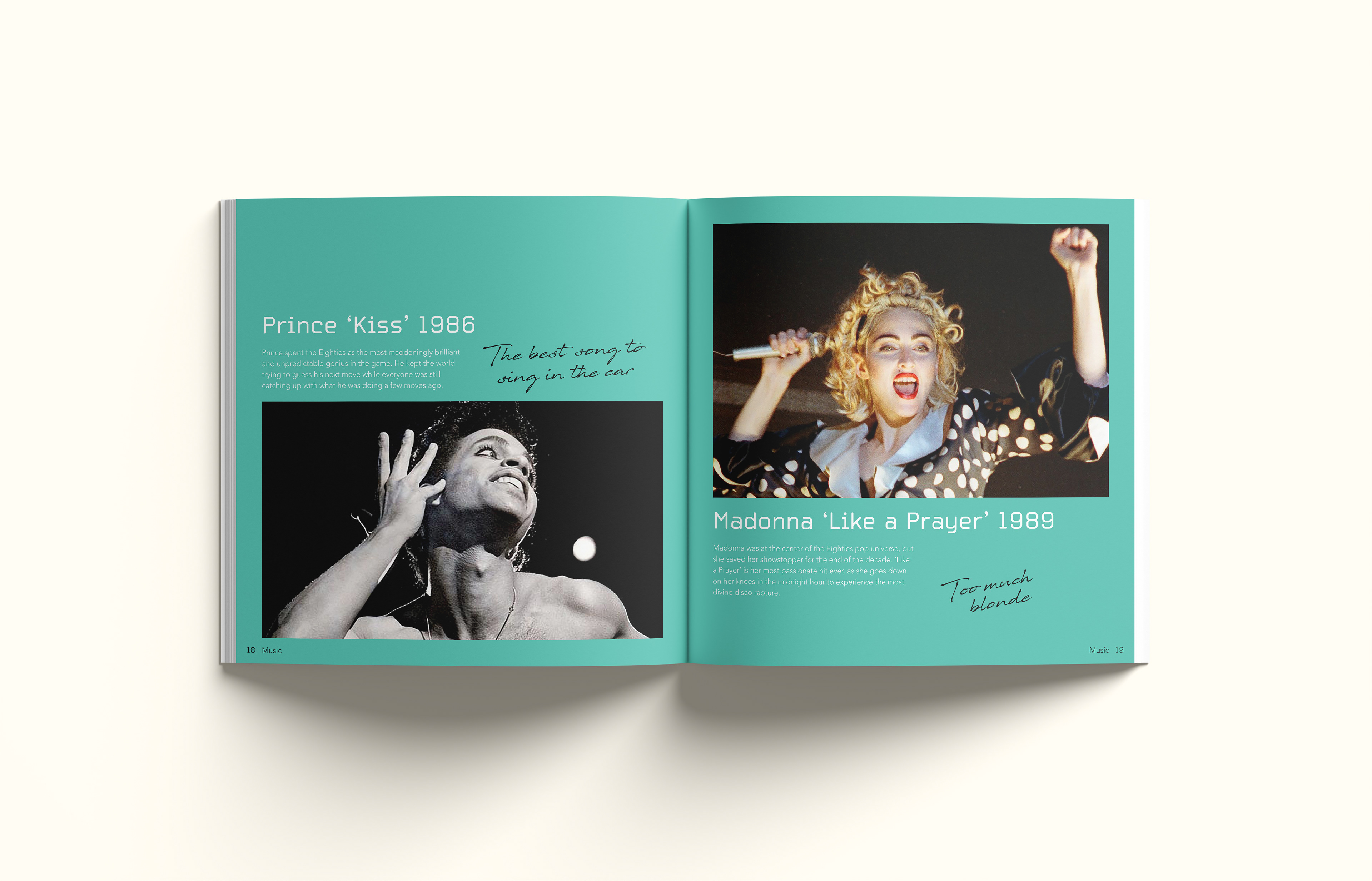A nostalgic dive into an unknown era I explore the eighties through the lens of someone born in 2000. I cover subjects like fashion music and design reflecting on the unique cultural energy and analog aesthetics I feel I missed. The design brings together archival photography and contemporary commentary to bridge the time gap. I share my thoughts and impressions through handwritten notes placed alongside the images offering a subjective look at a time I never lived through yet feel deeply connected to. Editorial Design | 2023 | Design Factory International